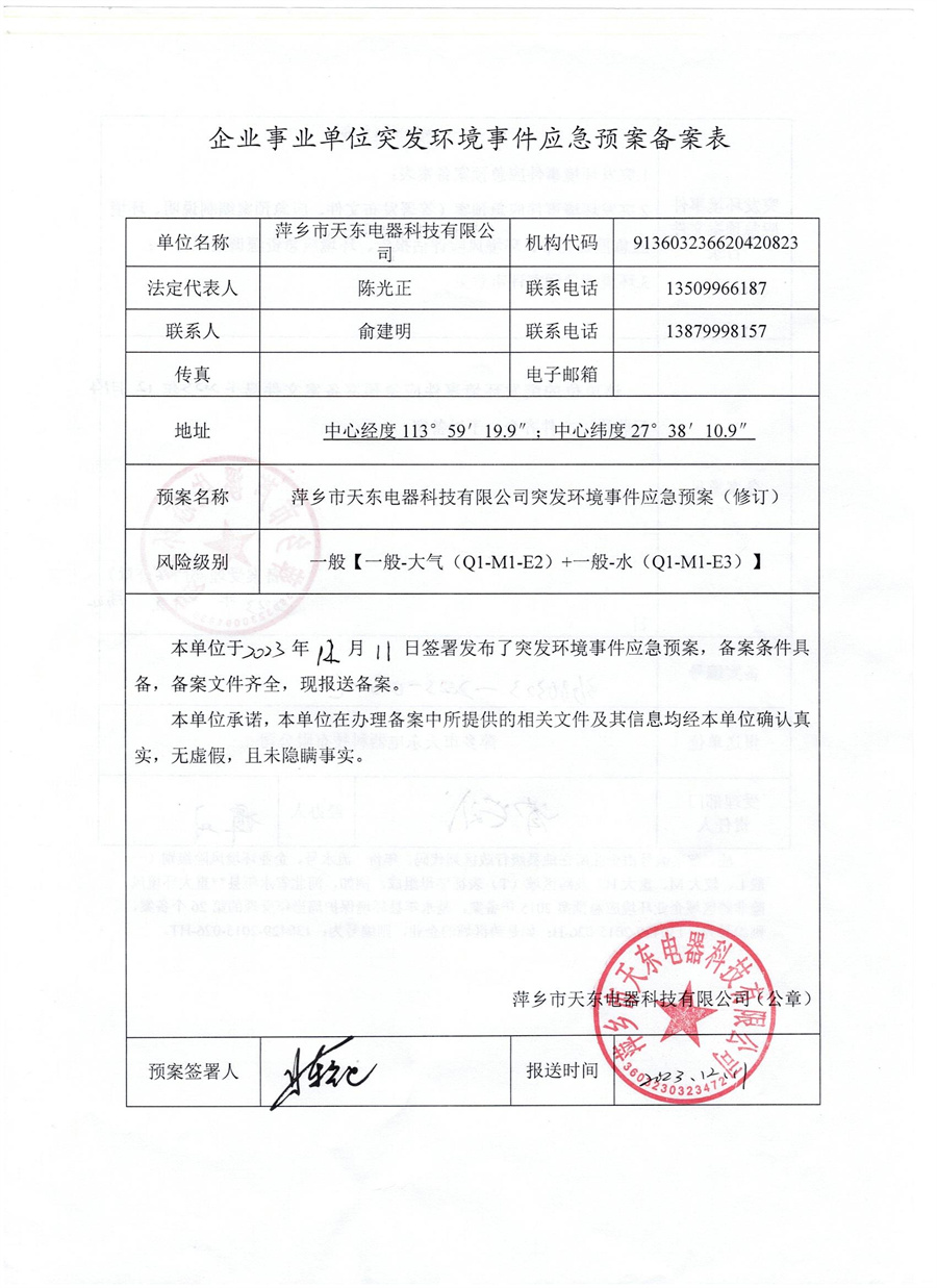 萍鄉市天東電器科技有限公司